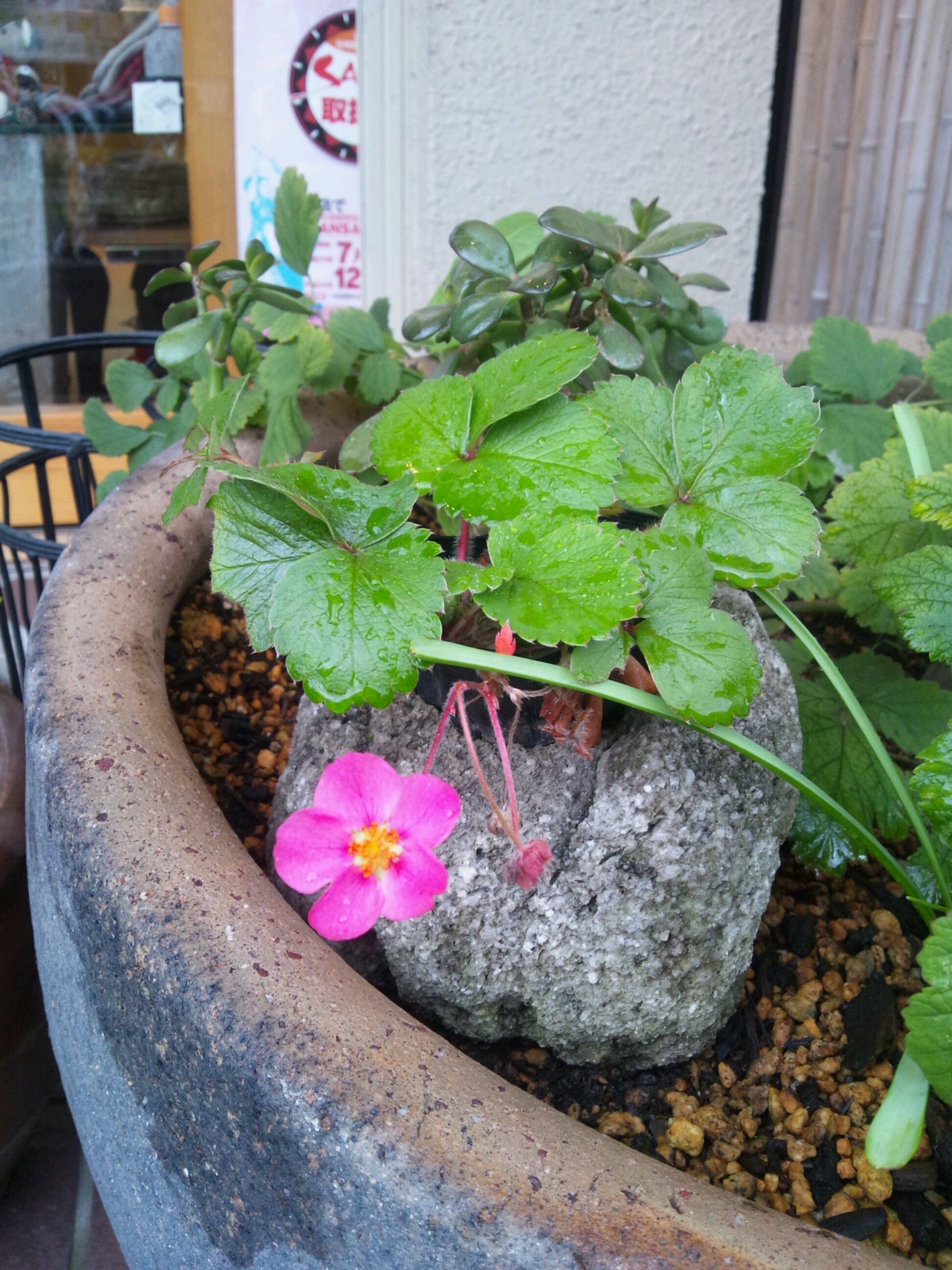 小袖の前のイチゴが花を咲かせてくれました。