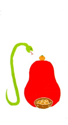 ほら、干支柄の裏面を見ると、みかん争奪戦のだるまさんとヘビ、実はだるまさん後ろにたくさんのみかんを隠していたりして!