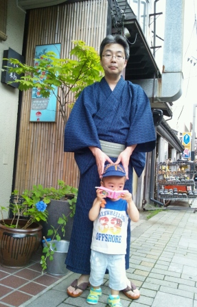 お坊ちゃんと一緒に記念撮影でしたが、写真よりおもちゃのケータイに夢中…仕方がないですね。でも、パパの浴衣姿、格好良かったんだよ~!