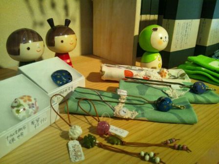 オリジナル作品としては、牛込謙治さんのポストカードやてきとうブローチ、トンボ玉俱利さんのかんざしやストラップなど。ね、どれも楽しみでしょう~??