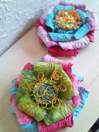 先々週、みなさまにお作りいただいた“紙のコサージュ”、