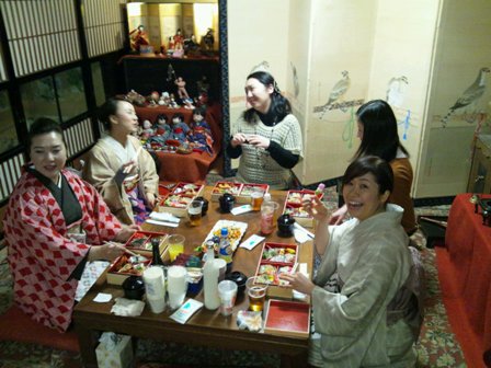 明日まで開催の「初夏のコーディネイト展」で着物指南くださっている岩崎氏をお招きして、プレ「旧暦のひな祭り」会でした。