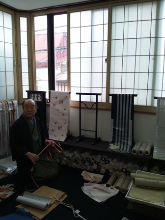 小袖の2Fにて、おなじみ日本橋の帯道楽・岩崎氏が着物のアレコレを指南してくださいます。