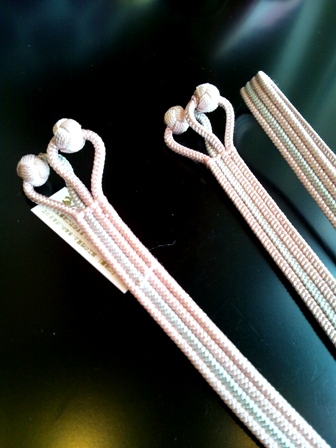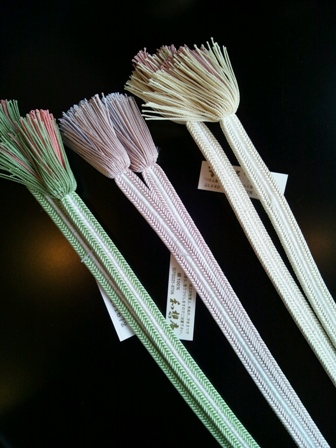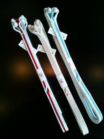 これまで、帯留めを通すのに、三分紐をご紹介しておりましたが、今回もうひと回り太い“四分”のタイプが入荷しました。