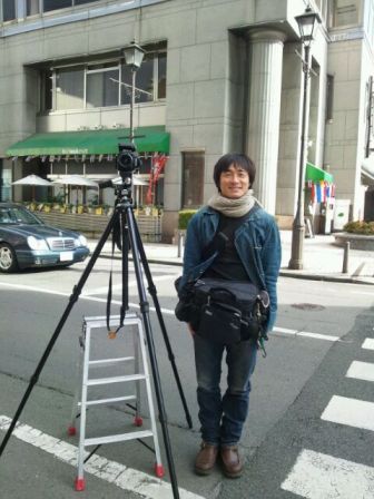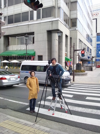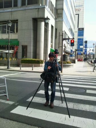 中の橋通りは、車も人も交通量が多く、そんな中で車道にはみ出しながら三脚を立てて撮影してくださいました。
