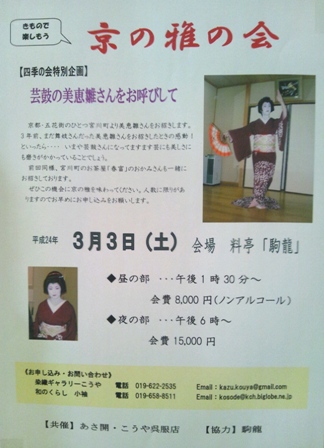 3年前には舞妓さんとして、やはり盛岡・駒龍へお越しくださった美恵雛さん。衿変えも終わり、芸妓さんとして芸にも、美しさにもさらに磨きがかかっていることでしょう。