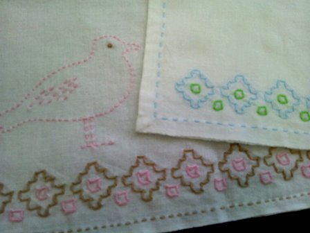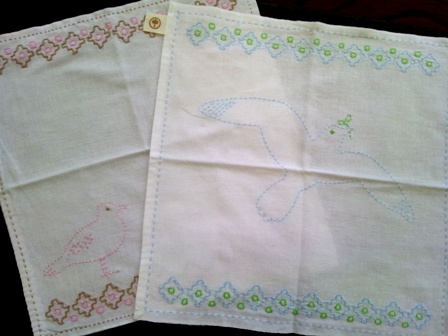 裏もちょっと濃いめの別生地がついて、四隅にこれまた可愛らしい刺繍が。