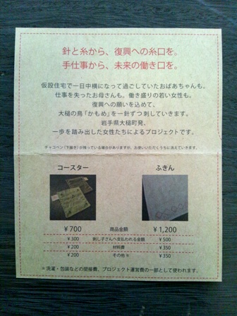 震災後、仕事をなくした女性たちのために5名の有志たちが立ち上げたプロジェクトなんだそうです。