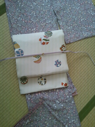 大事にしつけの糸をとって、この着物に合う帯を誂えました。