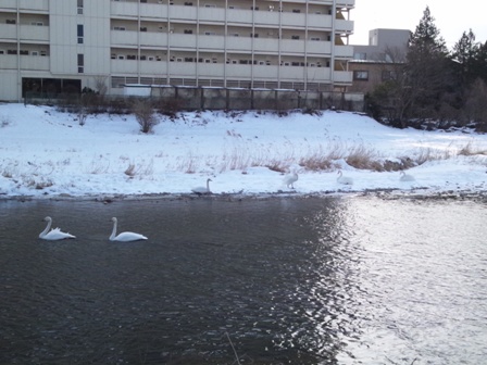 今朝、中津川の白鳥は3羽で飛ぶ練習していましたよ。