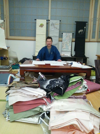たくさんの着物に囲まれている腕利き職人・坂本さん!