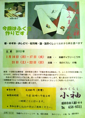 21日(土)と22日(日)の両日、小袖2Fにて「手描き草木友禅染め」体験会を開催します。
