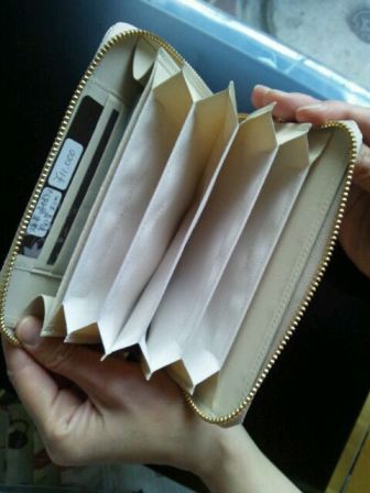 長財布は、周りをファスナーで開閉するタイプなのですが、そのチャック部分と内側の革の色が、柄によってさまざまでして…