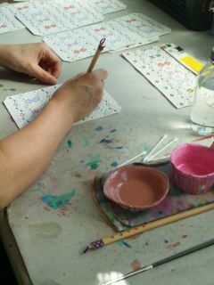 細い筆を使い分けて、丁寧に色を挿していきます。