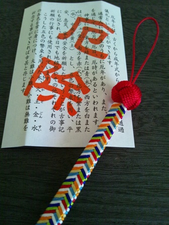 紐の部分に入った7色が、災いから身を守ってくれそうです。