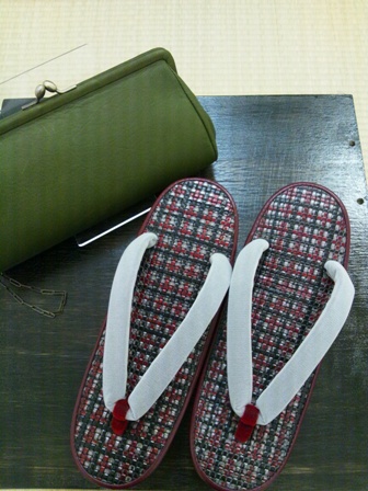 鹿革のやわらかいクラッチ・バッグと、メッシュのお草履。