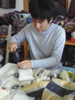 お色のバリエーションが40ちょっとくらいあって、選りすぐりの数点を、帯留めとヘアゴムで置いております。ほんとは、全色並べたいくらいですけどね!