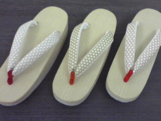 どれも淡い水玉の鼻緒で、お着物にしっくり合いそうです。