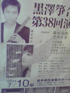 黒澤箏合奏団第38回演奏会に、“若き尺八プリンス”(和楽器の貴公子っていうそうですね)藤原道山さんが出演されるそうですよ!