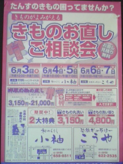 小袖は6月4日と5日にお着物のお直し会やりますからね~。