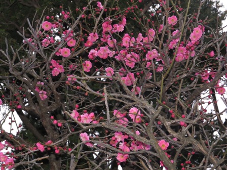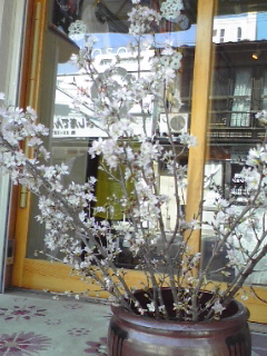本店横のお地蔵さんの梅が、力強く咲きました。