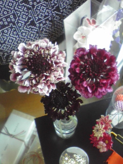 簪コーナーに飾ったら、どれが簪でどれがお花か、見分けがつきにくいです(笑) 馴染んでいます。