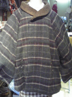 ウールのショート丈。マントやケープのようにも見えるこちらのタイプは、お着物にはもちろんのことお洋服にも着られるカジュアルなコートです。