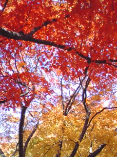 空の青ともみじの赤と何かの黄色、綺麗な色を見ながら出勤したら、