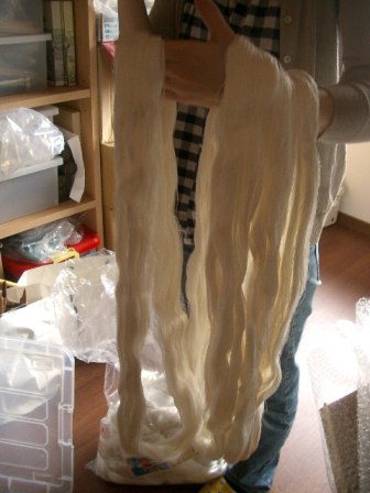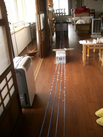 風呂敷を織るために、このように4.7mの糸を染めて乾かすのだそう。