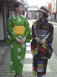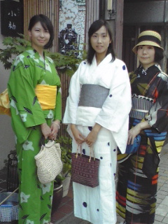 こちらのお3人さま、小袖仕様の浴衣・帯をお召しになられています。