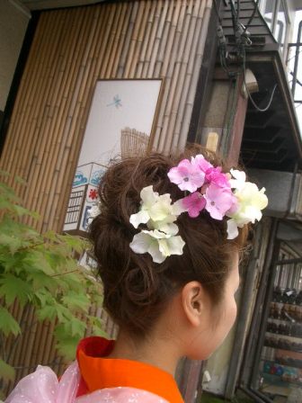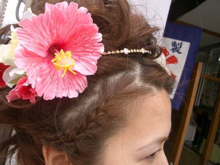 ヘアの方は、真っ赤なハイビスカスで夏気分満載!