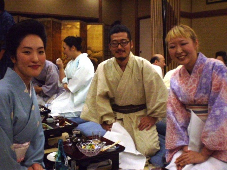 figuletiワタナベさん、芸者のたまご“知子”さんと、絞りの浴衣で色っぽさ急上昇!のsummer子ちゃんと、両手に花♪で、もうデレデレですね。