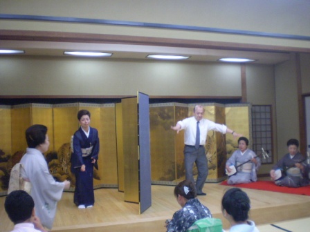 ご夫婦でご参加の、いつも素敵な旦那さま。こんな芸をお持ちでしたか~! これぞお座敷芸、安来節!
