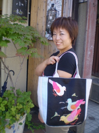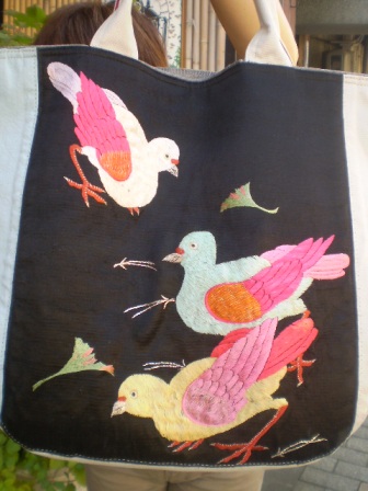 ちょっと脆い、昔の繻子の生地でしたが、上手に使っていただいて、普段使いに最適な丈夫なトートバッグになりました。