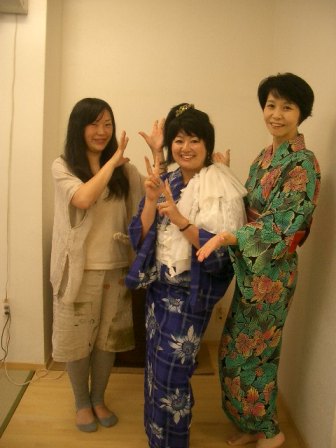 向かって左、Sッチさんが、みなさんの着付けをしたそうです。