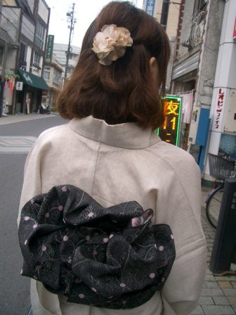 裕美子店長と蟻・サイジョウさんの二人がかりでスタイリングしているのは、ズバリ「きもの姫」のイメージ。