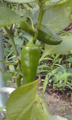 ほったらかして、草がぼうぼうになっていたちっちゃい畑で、早速ミニ・パプリカがなっていた!
