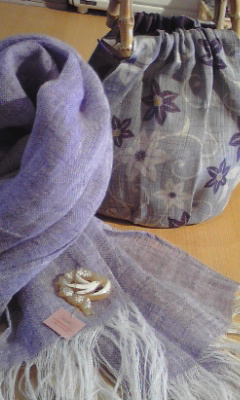 さらりと気持ちの良いリネンのストールや、ちょっとしたアクセントにBISOU*さんのブローチ、鉄線のミニ・バッグなどなど…