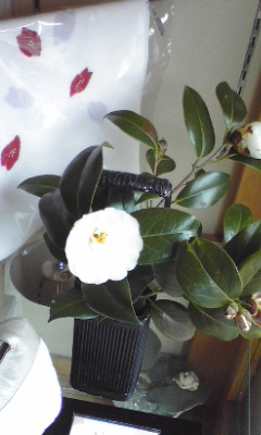 今朝、店の椿が咲きました!