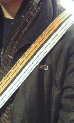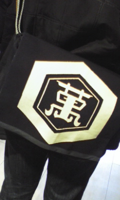 バッグのフタを開けたら、笑える手ぬぐいが…