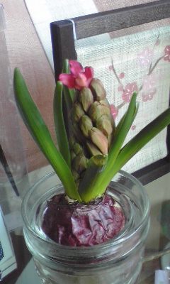 小袖の“球根ヒアシンス”の花が、咲き始めました!