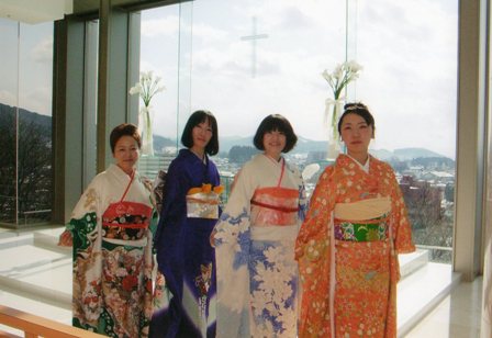 丁度、当日はウェディング・フェア開催中でして、お振袖で模擬結婚式にも参加。本番さながらの参列者(見学者!)♪