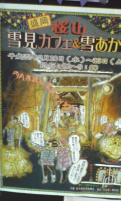 「盛岡・桜山雪見カフェ&雪あかり」は13日(土)まで。連日、午後5時~9時まで(雪あかりは8時まで)となります。