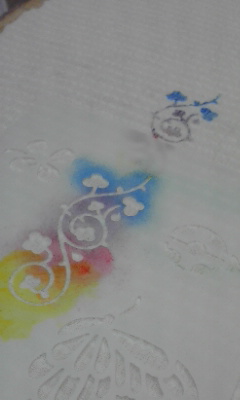 作業は、ごく簡単!ステンシルで、ぽんぽんと軽く叩くように色を載せていきます。バランスややり方などは、藤倉先生が丁寧に教えてくださいますので、ご心配なく。