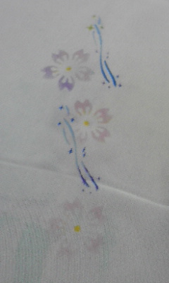 片側は、流れるような水の文様と桜。この桜も、一輪のなかにグラデーションがあったり、かなり細やかな色付けになってます。