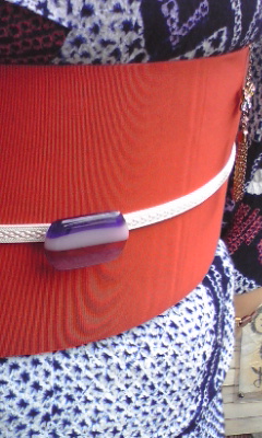 7月の「ガラスの帯留め制作体験会」でお作りになった作品を、絞りの浴衣に合わせて、付けてくださいました!
