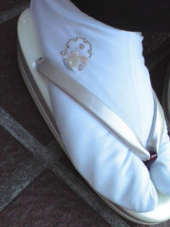 雪輪にうさぎの刺繍が愛らしい白足袋と、赤い前つぼが女性らしい丹頂の草履。小物を変えるだけでも、コーディネイトがぐんと楽しくなりますよねっ。