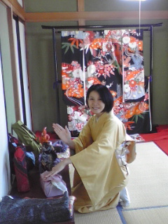 参加されるお客さまが、きもの姿を見せてくださいました。