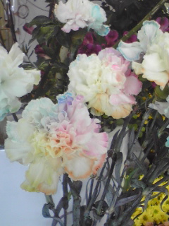 レインボーのバラは見たことあったけど、カーネーションまで!