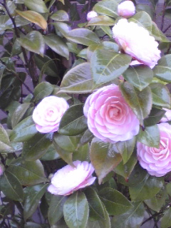 八重咲きの椿。ピンクのバラのようで、きれいだなぁ~。
